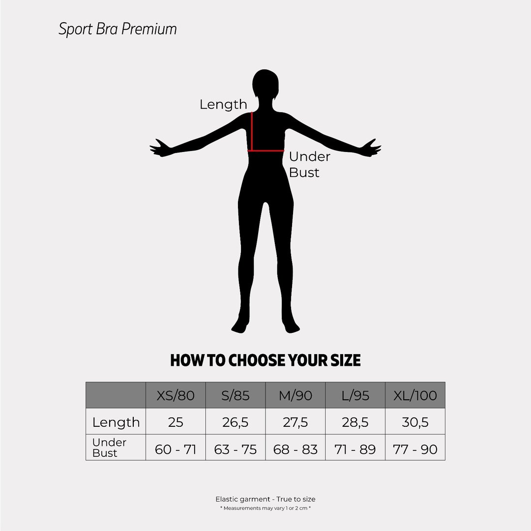 Sujetador deportivo de sujeción media con almohadillas extraíbles, escote abierto redondo y tirantes ancho que se juntan en un en la parte posterior. Tejido muy ajustado y flexible. Colección Premium.